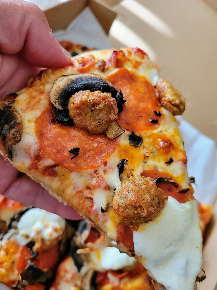“ "Groovy Island Pizza Co" is a virtual brand operating out of what used to be Straw Hat Pizza in Alameda's Marina Village. Straw Hat is gone, and now it's a sports bar. But I'm guessing they still have pizza ovens, because there's a really good pizza kitchen there. Groovy Island Pizza gets 5-stars for VALUE alone! I ordered a Mushroom & Sausage Medium pizza, added pepperoni and more mozzarella, and the price was still under $20! Of course the price adds up as you pile on the toppings. First, this is a virtual brand and not a ghost kitchen. This is simply a real business selling pizzas over delivery apps. For some reason, they're using this crazy name. I ordered a medium "Mushroom & Sausage" Pizza. Then I added Pepperoni and more Mozzarella Cheese. Price $18.95. That's a medium pizza with 4 toppings. It was hellya good! It had my basic requirement for a good pizza....a thick blanket of cheese. Crust was soft, but lightly crispy. Even with pepperoni and sausage, it was not overly salty. It was just a good pizza, at a fair price. ”